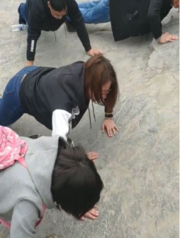 各小组结伴向前、配合默契,很快到达了第一个和第二个打卡地点,并顺利完成打卡任务。